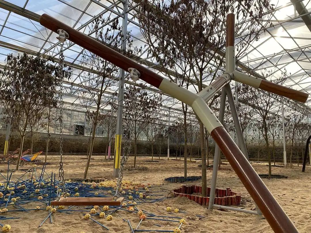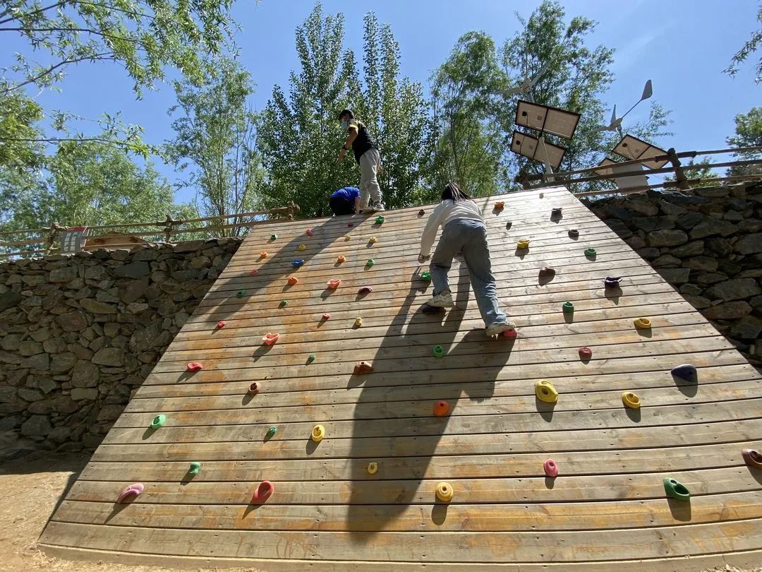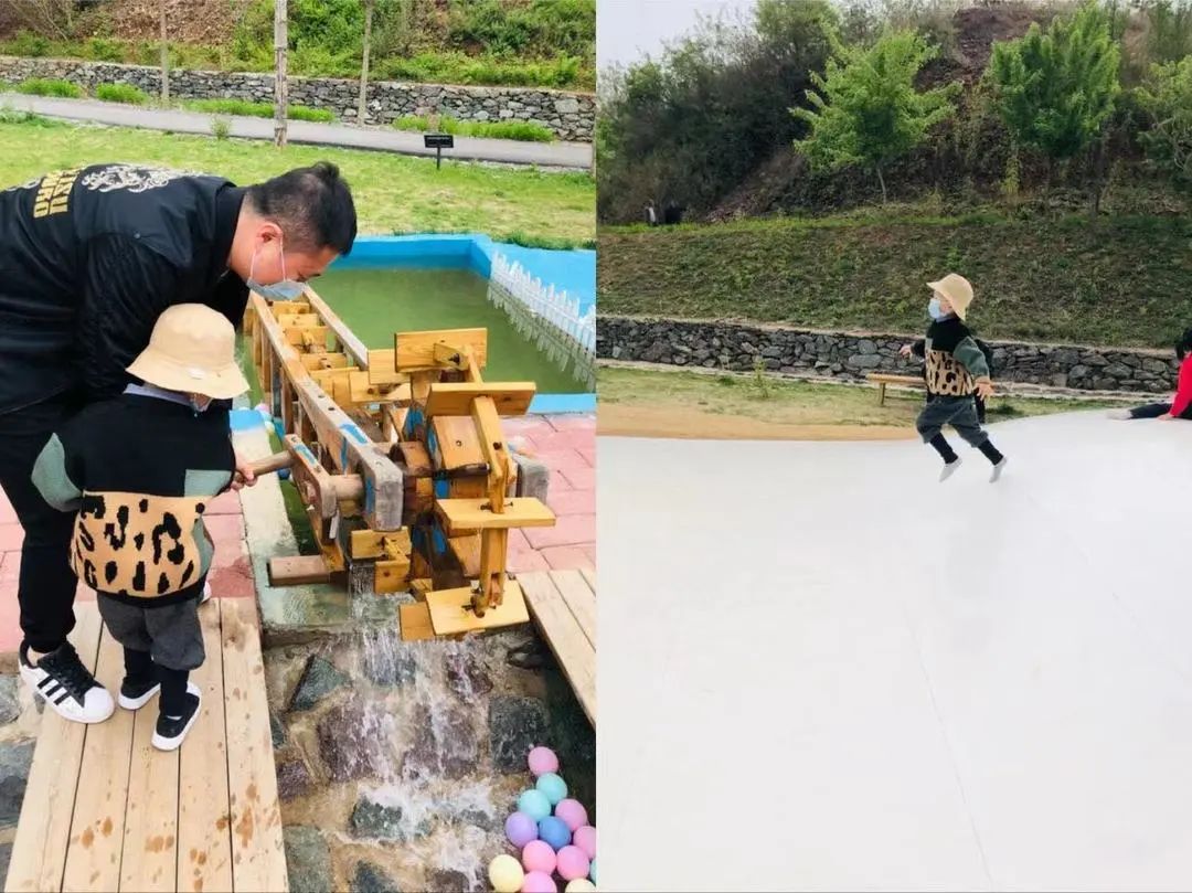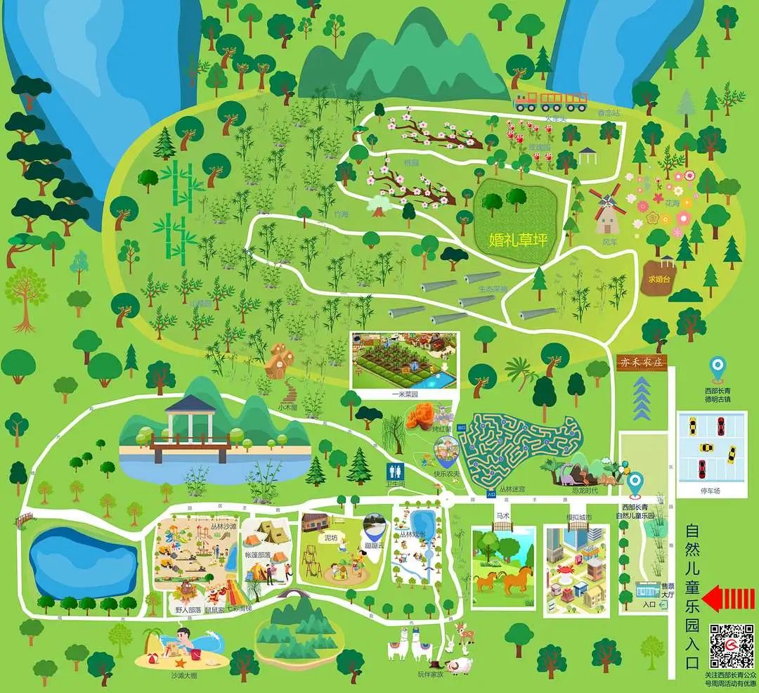 自然儿童乐园位于园区的葡萄沟,占地20万平米。在这座奇妙的山谷里,设计师运用大量天然材料,结合青山、绿野、竹林、溪水等自然环境,精心设计布局了萌宠乐园、用原木做成的游乐设施、可供孩子尽情玩耍的丛林沙滩、快乐的农耕体验、磨炼意志的丛林探险乐园、启发想象力的户外自然手工课堂、遍布整个园子的野趣休憩空间、竹林深处幽静的度假木屋小院、引发探索物种起源遐想的恐龙世界……近百个各具特色的游玩体验项目,融汇自然游乐、生态观光、科普、研学、拓展、亲子互动、休闲度假等多功能于一体,为孩子们提供一个亲近自然、发挥潜能、快乐成长的的沉浸式亲子互动自然乐园。